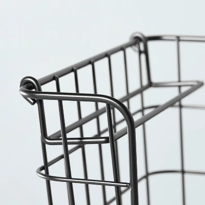 Instantly organize any room in your home with the Metal Wire Stacking Basket from Hearth & Hand™ with Magnolia. Featuring an open-wired construction, this matte black basket has a stackable design, with side handles that fold inward to stack the basket on another one, allowing for vertical storage and space-saving use in any cabinet, countertop or under the sink. This metal basket is suitable for holding a variety of household items — use it in the kitchen for supplies, in the bathroom for toiletries, or in your room as a container for craft supplies.