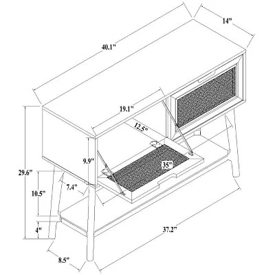 Add functional style in your entryway, living room or other area of your home with the Wood & Cane Console Table with Pull-Down Drawers from Hearth & Hand™ with Magnolia. Crafted from solid wood, this rectangular console table features a clean-lined silhouette in a solid black finish that blends easily with a range of different palettes and decor styles. The cane accented pull-down drawers provide plenty of room for storage, while its bottom shelf offers storage for tucking extra items out of the way. Stage it in the hall or behind the living room sofa with your favorite decorative items, greenery and family photos to bring your personal touch.